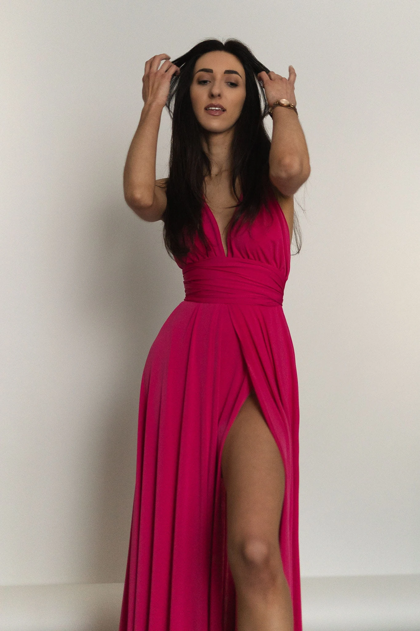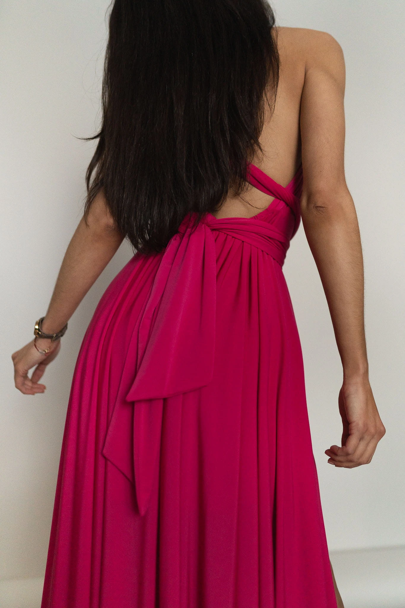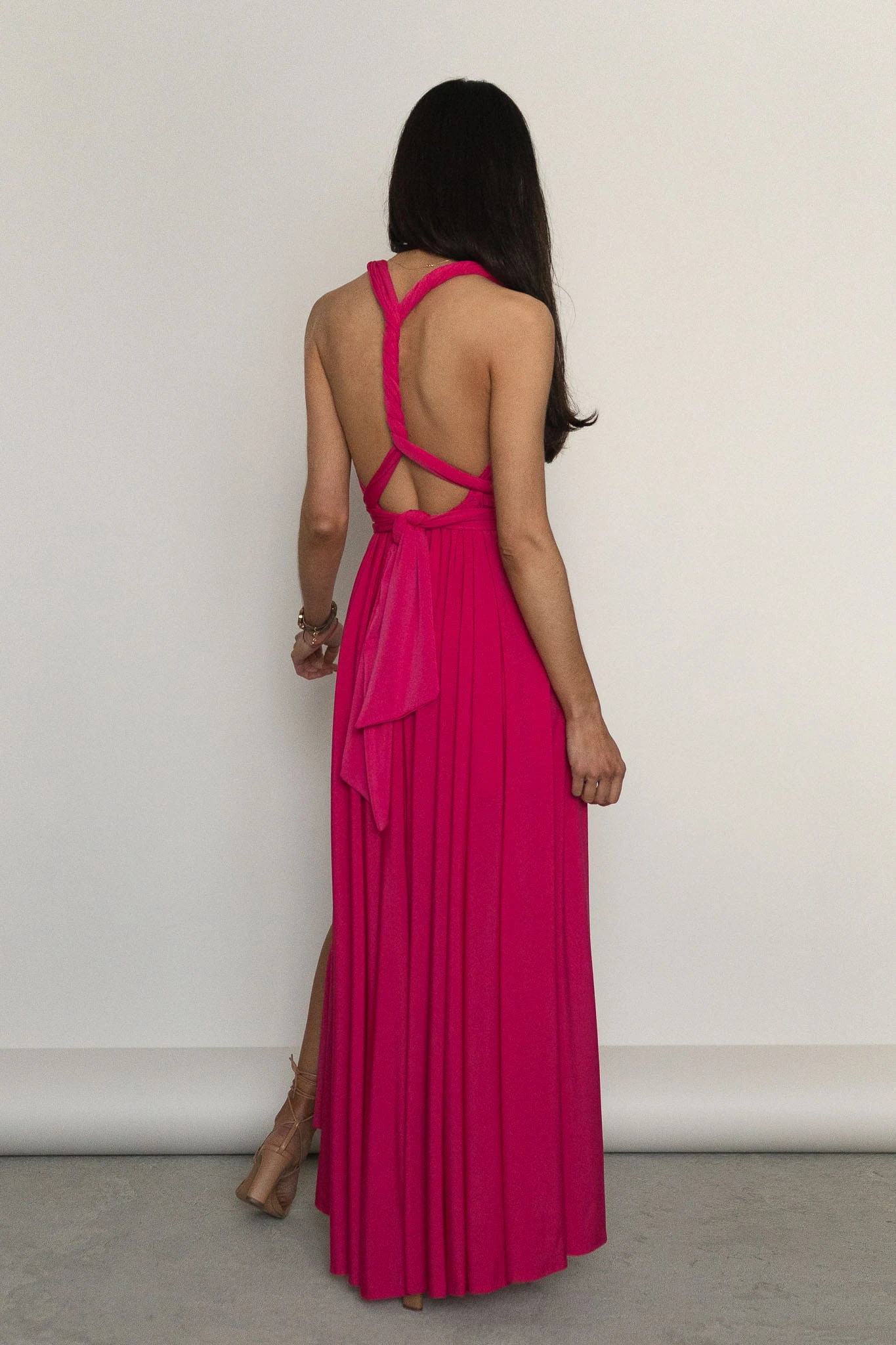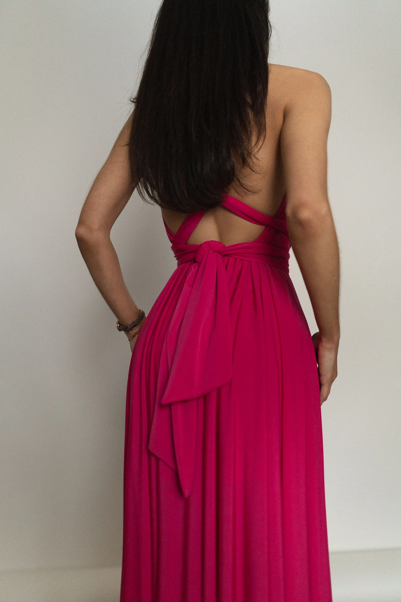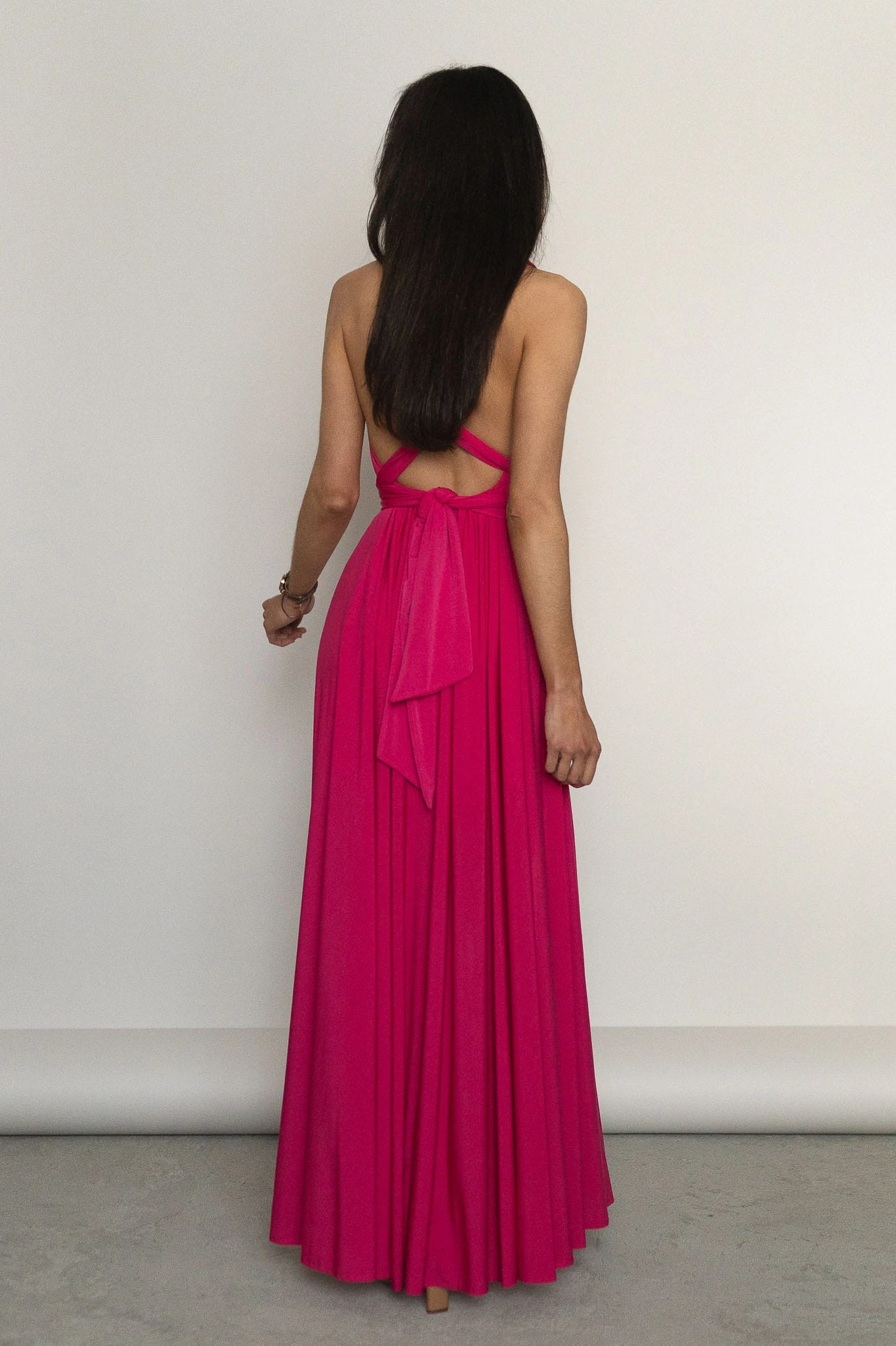 Asturia - długa sukienka z wiązaną górą fuksja