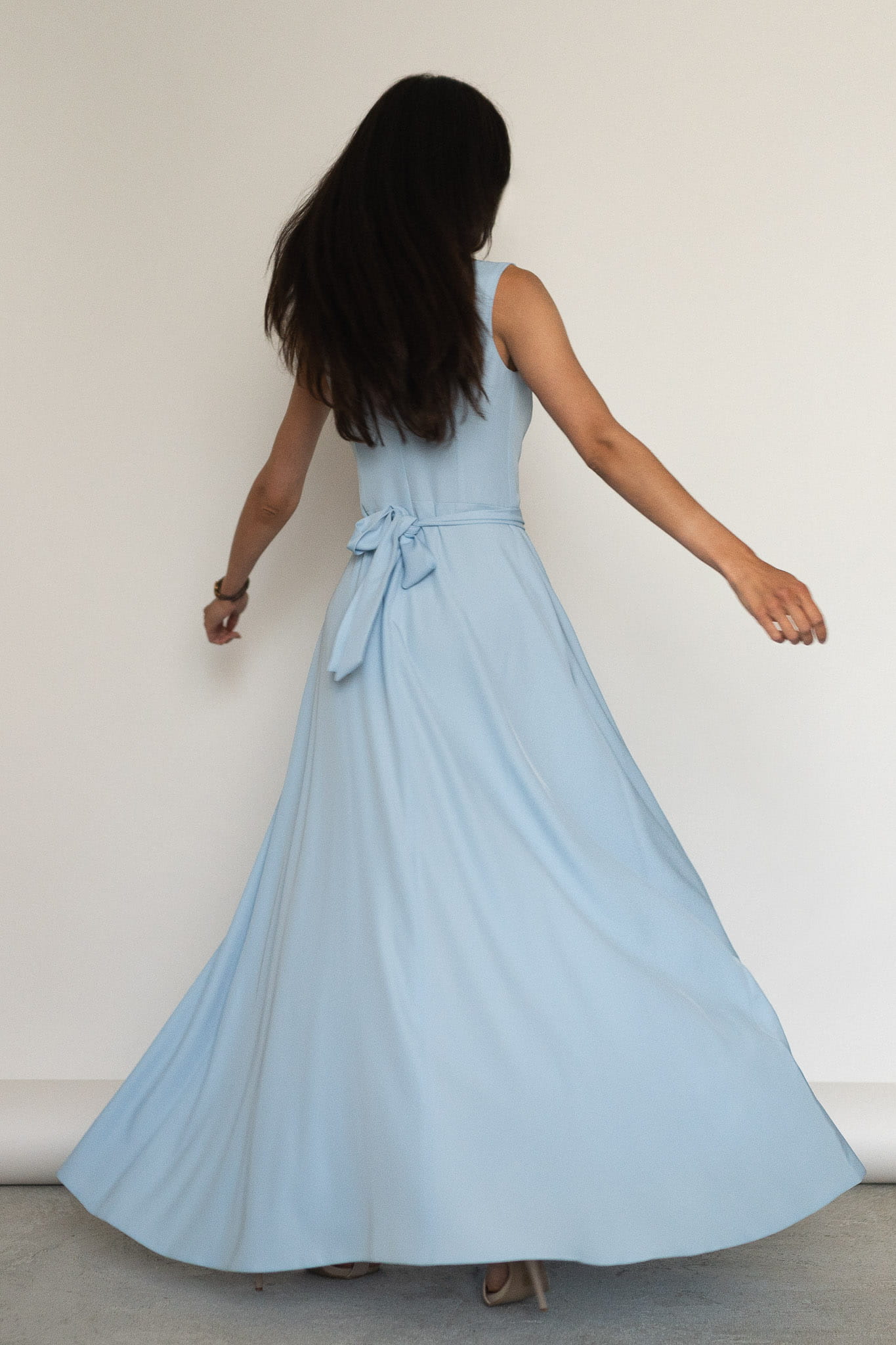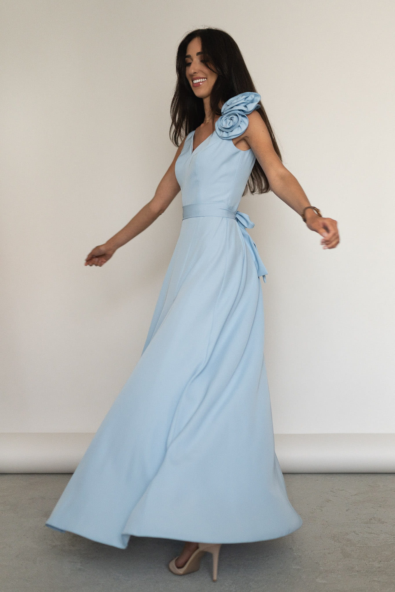 Biella - sukienka maxi z różami błękitna