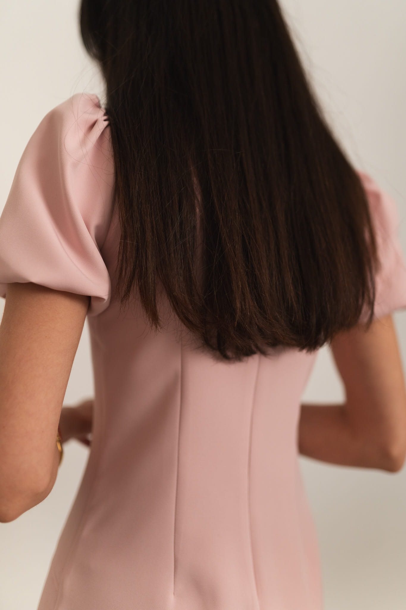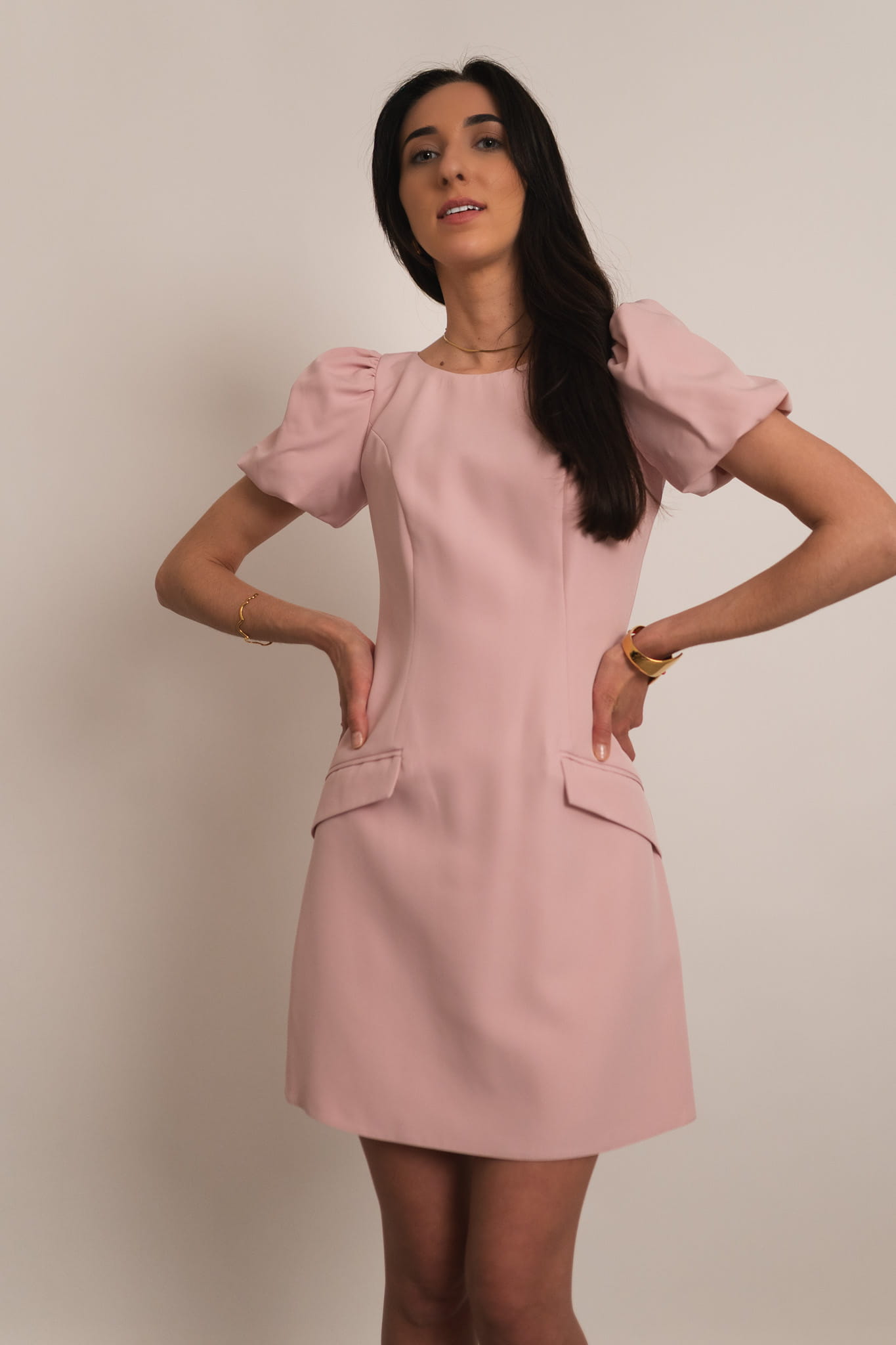Maiera - sukienka mini z bufkami i patkami pudrowy róż