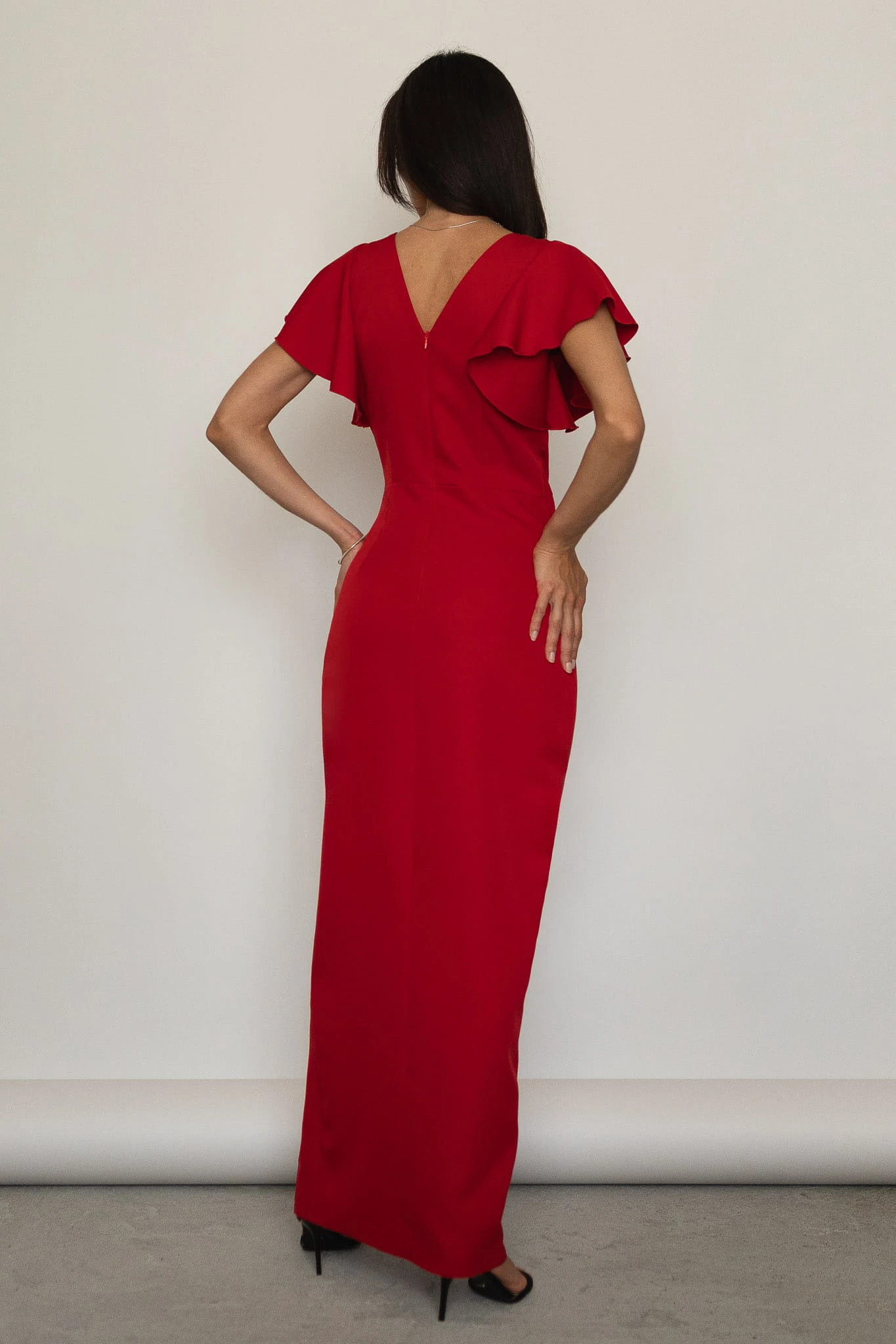 Marbella - kopertowa sukienka maxi z krótkim rękawem czerwona