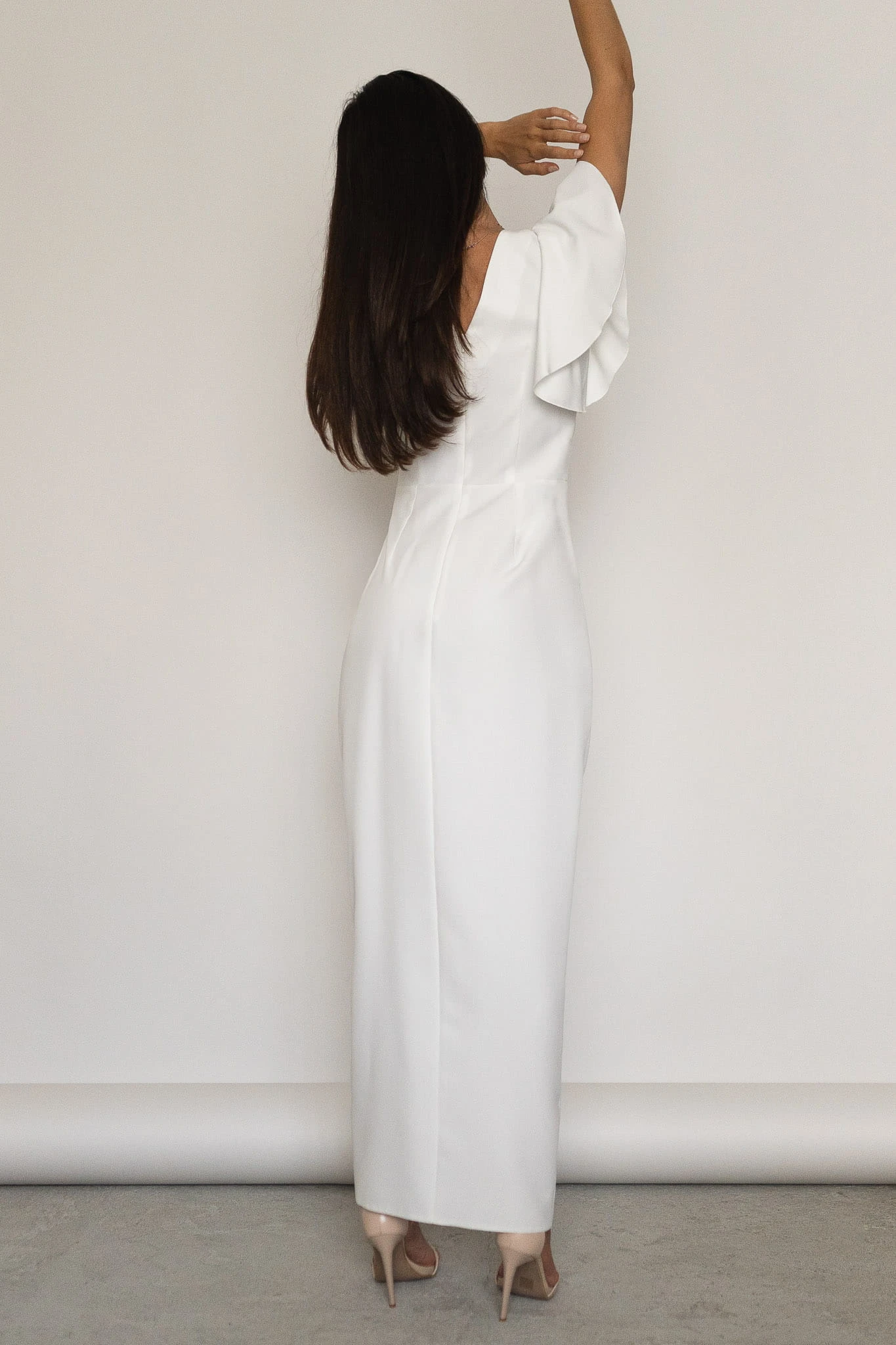 Elegancka sukienka długości maxi o kopertowym kroju z krótkim motylkowym rękawem zakrywającym ramiona. Model podkreśla biust i szyję a drapowania w talii maskują niedoskonałości w okolicach brzucha. Dół z rozcięciem eksponuje nogi. Sukienka idealna na wszelkie imprezy okolicznościowe. Dostępna w kilku kolorach.
