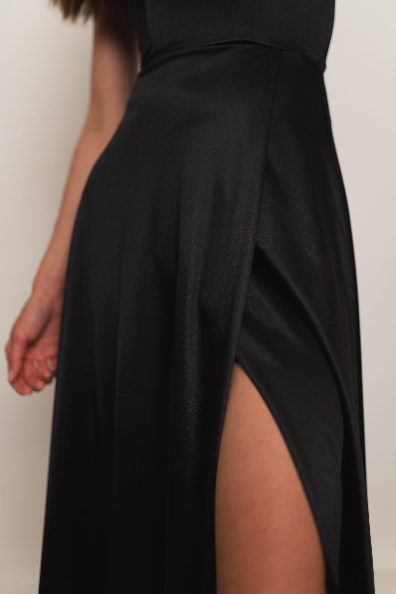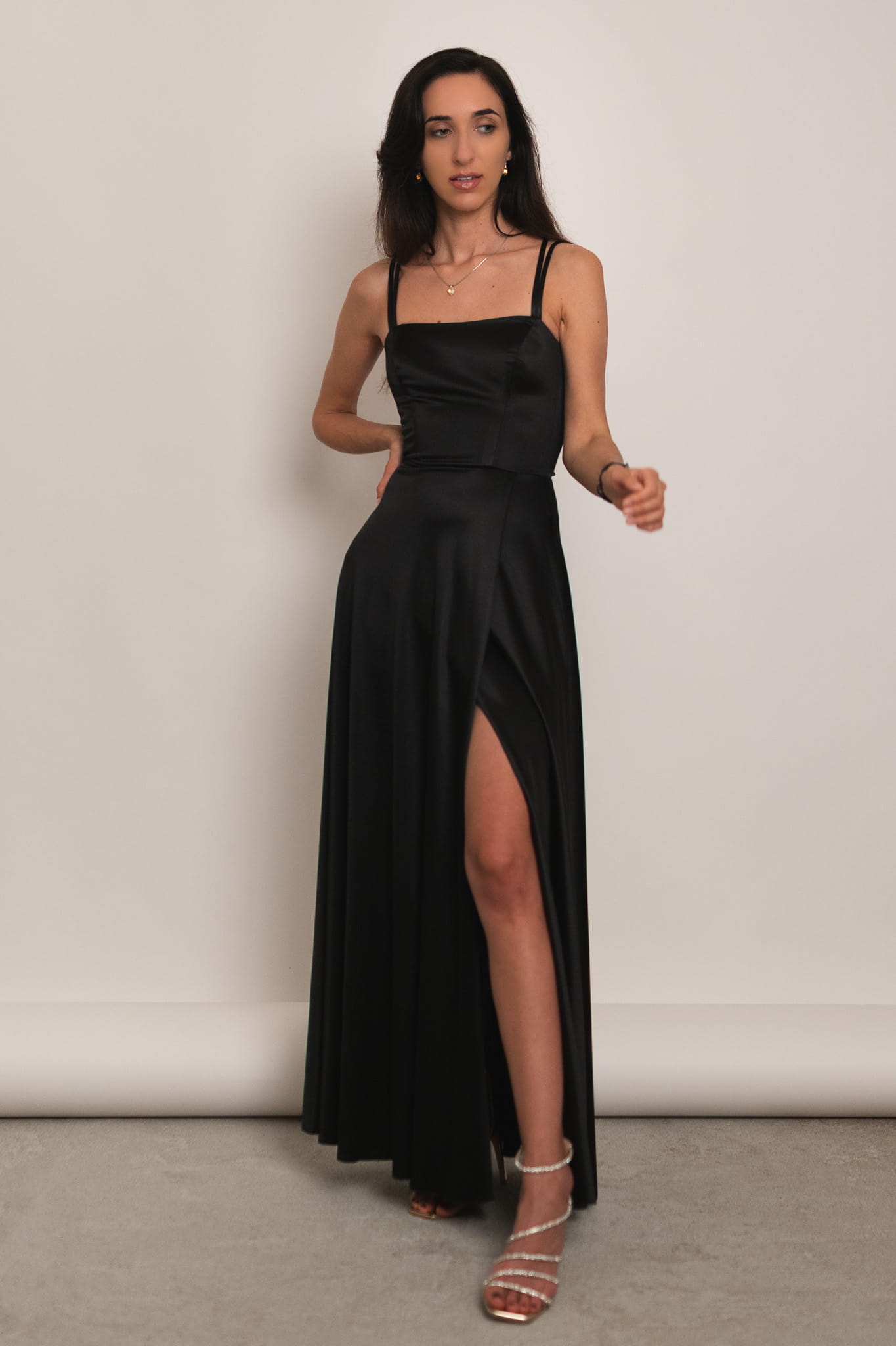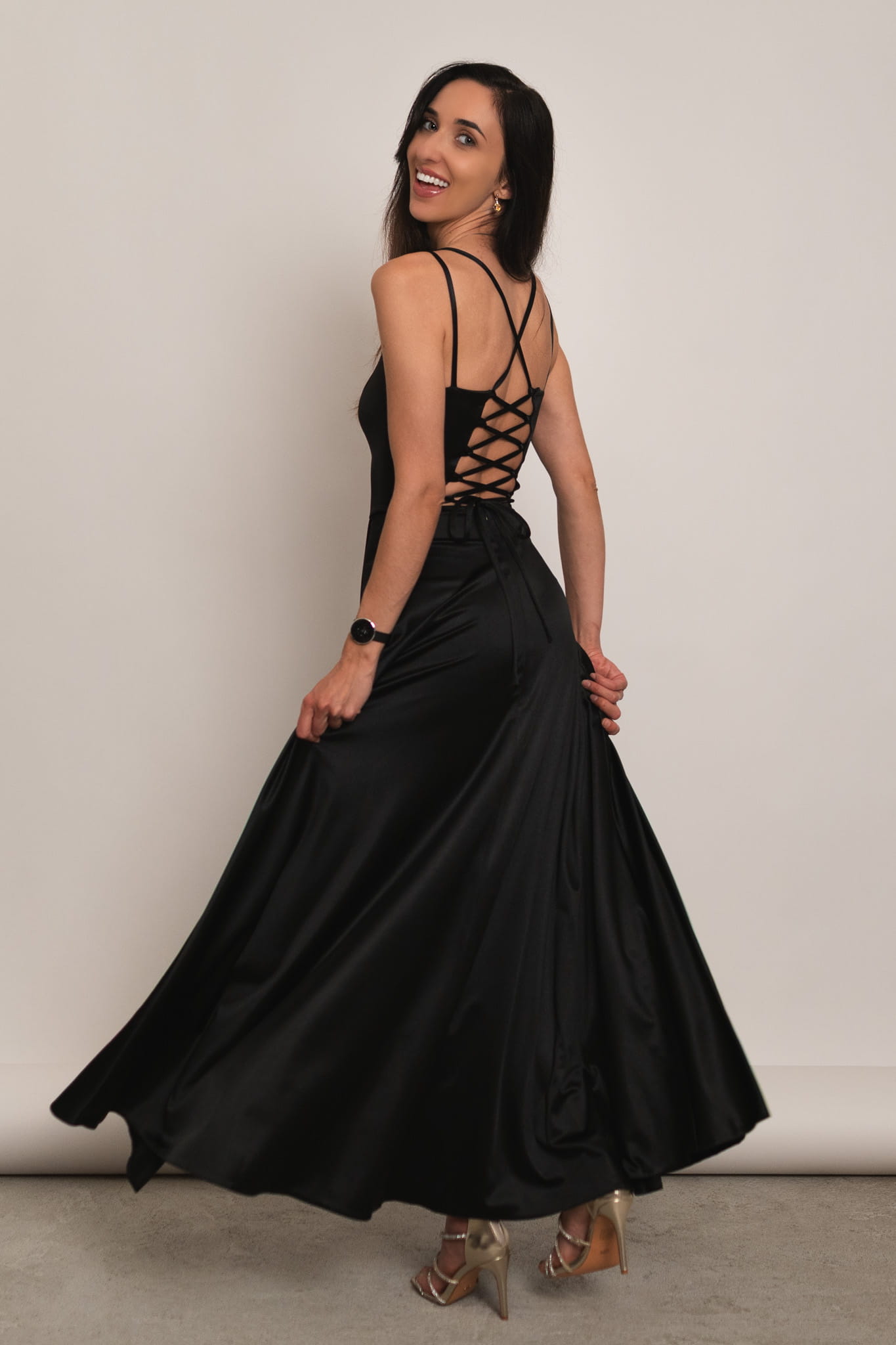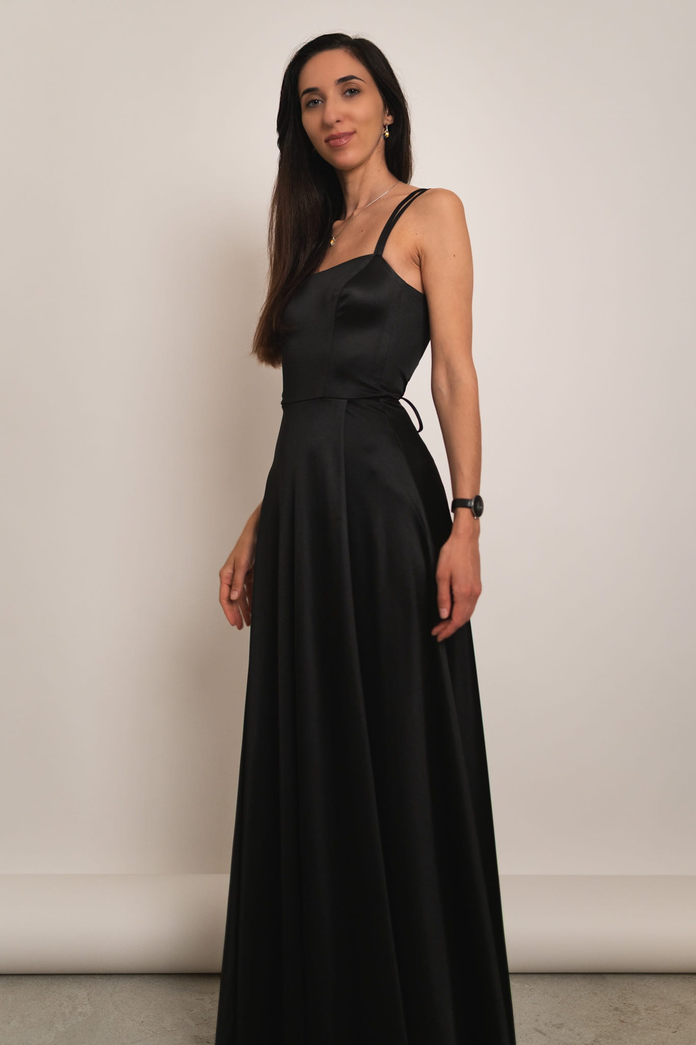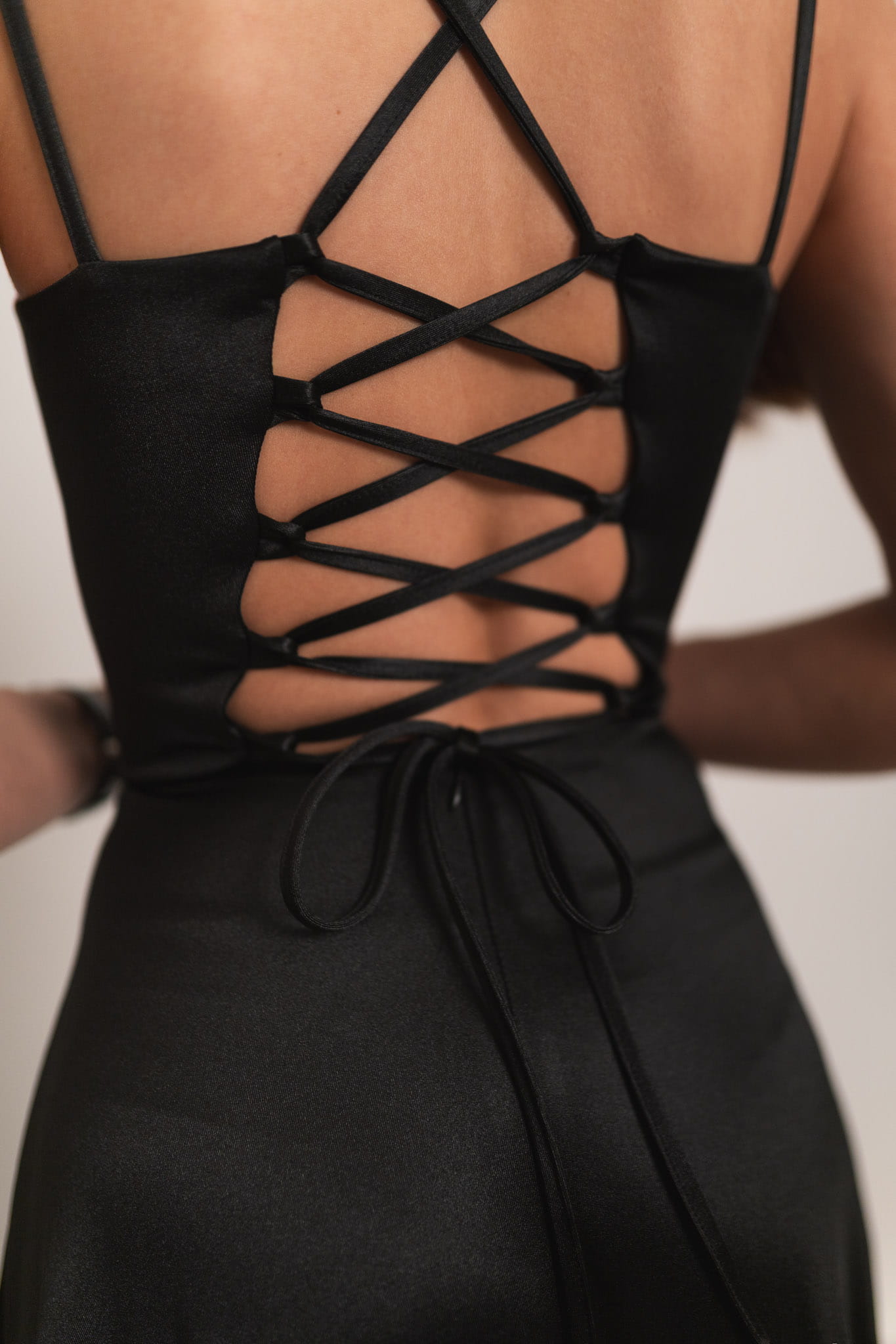 Mijas - satynowa sukienka maxi z gorsetowym wiązaniem czarna