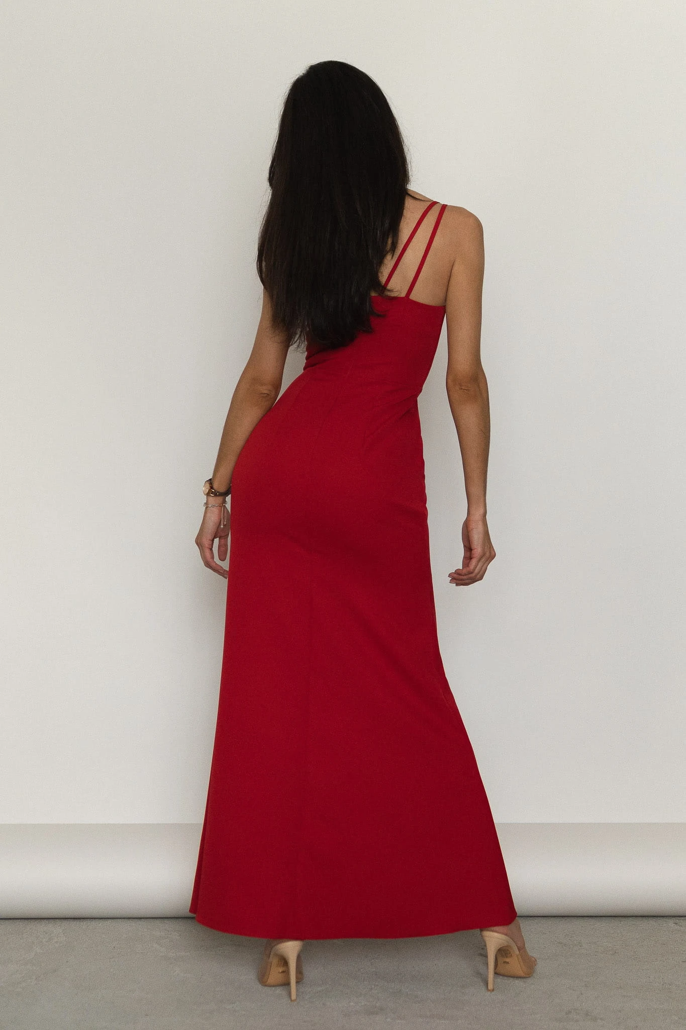 Paris - sukienka maxi na ramiączkach z różami czerwona
