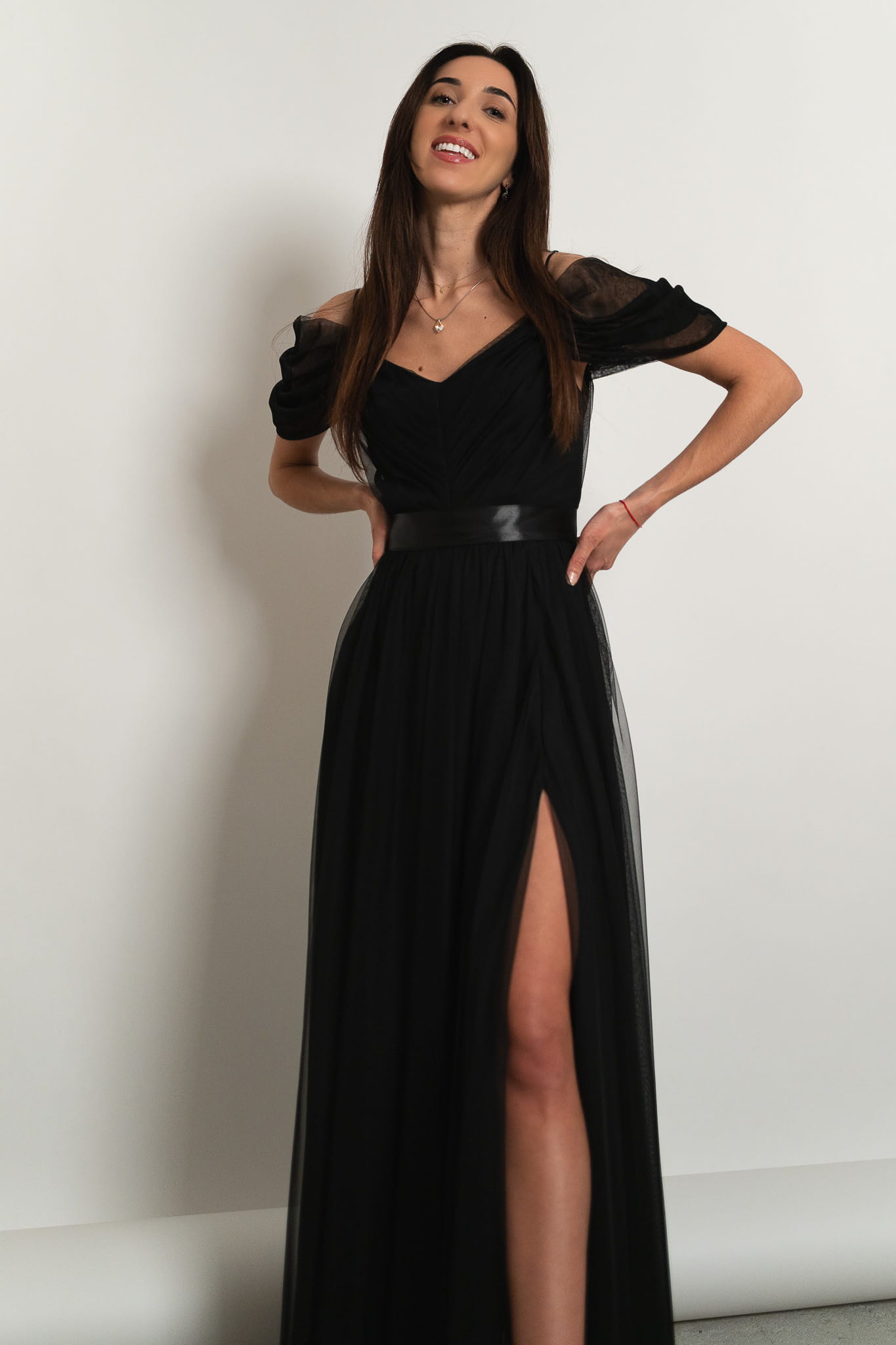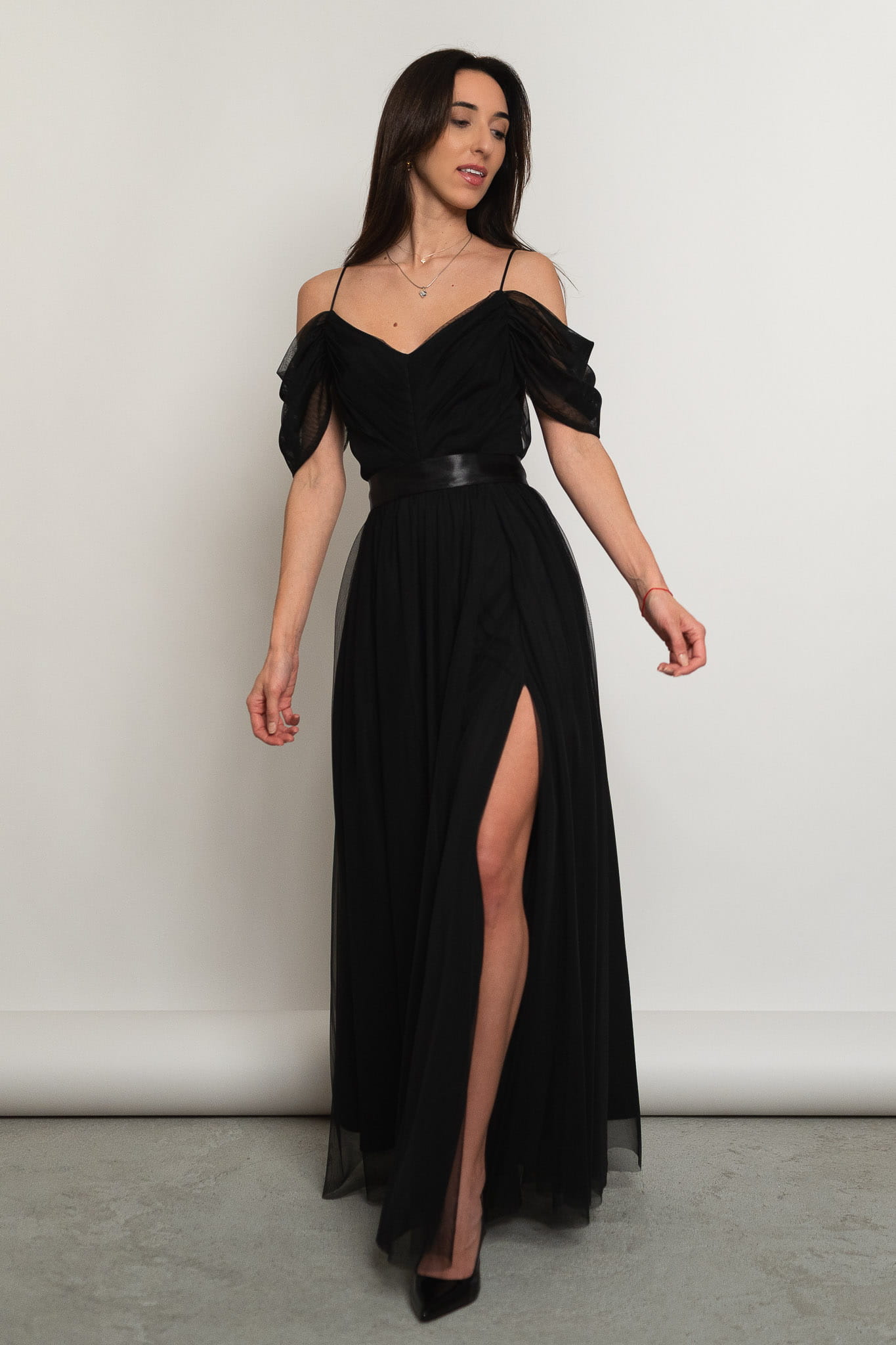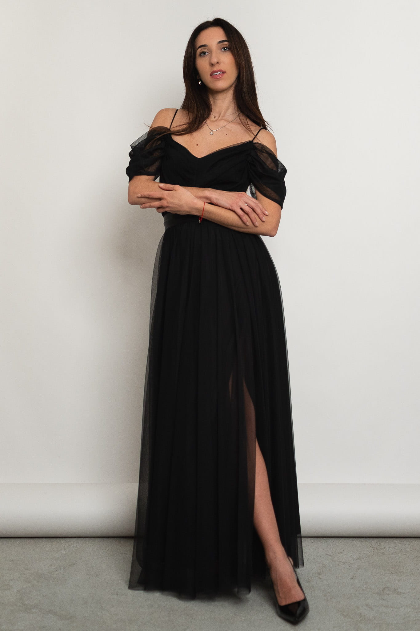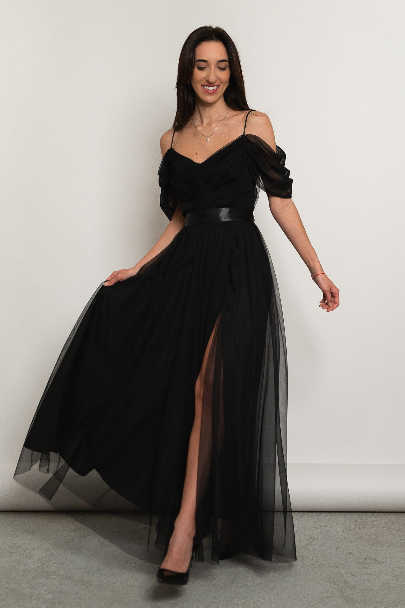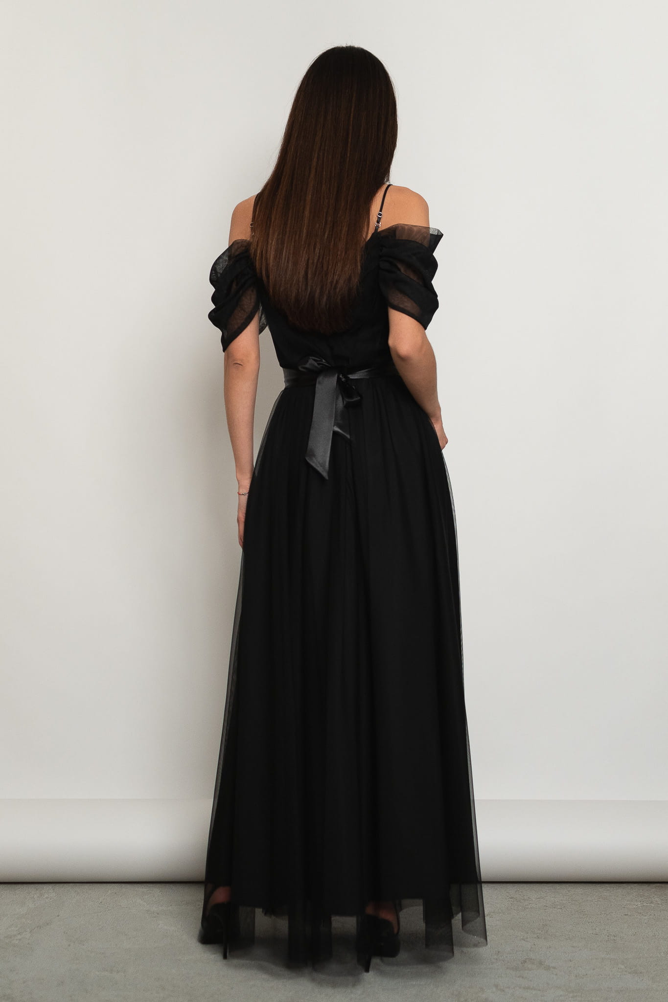 Parla - tiulowa sukienka maxi hiszpanka czarna